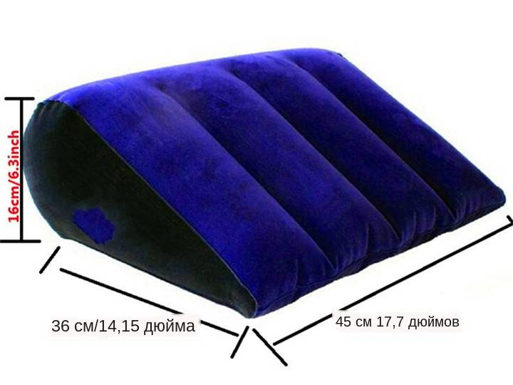 Высота будет увеличена до 220 мм после полной надувания, вы можете использовать его для поддержки вашего тела для достижения всех видов сексуального положения, мягких и удобных. Изготовлен из флокированного ПВХ материала, моющийся и долговечный. Оснащен одним мини-насосом, прост в использовании и очень удобен. Вы также можете использовать рот в качестве насоса, всего одна минута. Складной, вы можете сложить его после использования, экономя место для хранения. Портативный и легкий, вы можете положить в сумку и взять его с собой, без ограничения времени и места. Сначала нужно ущипнуть воздухозаборник, затем можно сдуть. Хорошее сопротивление сжатия, пожалуйста, будьте уверены, подходит как для мужчин, так и для женщин. Также прекрасный подарок для вашей семьи и друзей. Характеристики: Название: опорные колодки для корпуса Материал: флокированная ткань из ПВХ Цвет: черный + темно-синий Размер изделия: 380*320*220 мм Вес посылка: 140 г/4,94 унций Посылка: 1 * Секс Подушка