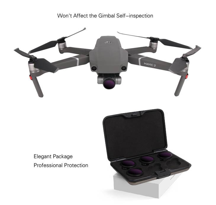 Размер (для mavic 2 zoom): 110x76x24 мм Размер (для mavic 2 pro): 110x86x25 мм 2 вида выбора: для DJI MAVIC 2 ZOOM/PRO Материал линз: оптическое стекло Материал рамы: авиационный алюминиевый сплав