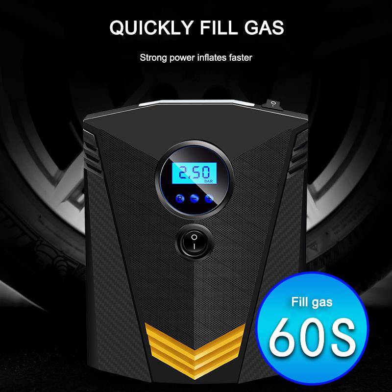 Автомобильный воздушный компрессор может быстро прокачать ваш автомобильный ярус в течение 60 с. Сопло для подключения типа нажатия удобно и быстро работает.