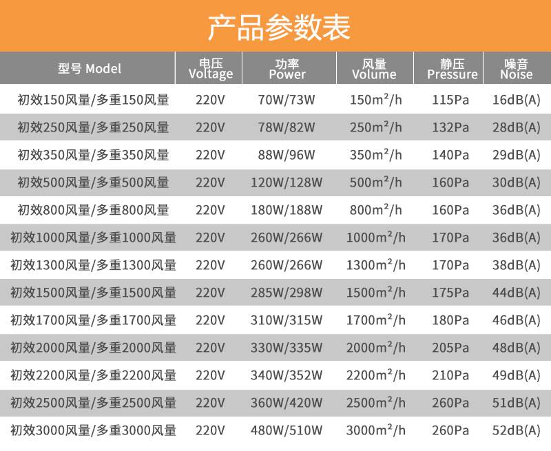 Напряжение: 220V Материал: оцинкованный лист Направление воздушного потока: Двусторонняя вентиляция Мощность: 70 Вт Объем воздуха: 150 ㎡/ч Без звука: 115 Па Шум: 16 дБ (A) Восстановление тепла: 88% -96% Фильтр: 1 шт. Начальный фильтр «Два в одном» с активированным углем Модель: 150B Напряжение: 220V Материал: оцинкованный лист Направление воздушного потока: Двусторонняя вентиляция Мощность: 73 Вт Объем воздуха: 150 ㎡/ч Без звука: 115 Па Шум: 16 дБ (A) Восстановление тепла: 88% -96% Фильтр: 1 шт. Начальный фильтр «Два в одном» с активированным углем 1 шт. Комбинированный молекулярный фильтр F5 1 шт. Фильтр средней эффективности HEPA класса H12 (3M) 1 шт. Высокоэффективный фильтр HEPA класса H13 (3M)