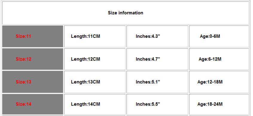 Примечание: американский размер неправильный, пожалуйста, выберите размер в соответствии с длиной стопы вашего ребенка. Спасибо