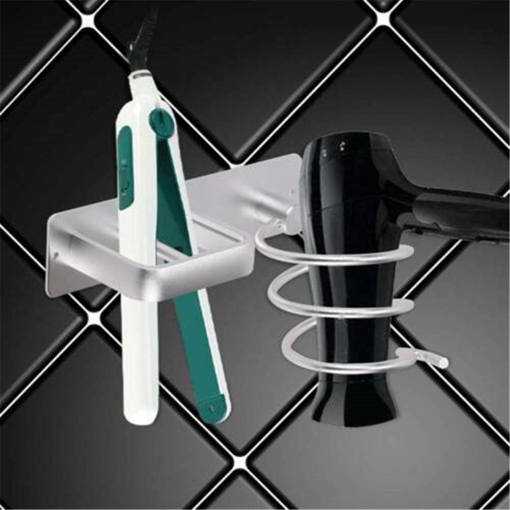 Серебристая металлическая настенная подставка для фена, подставка для выпрямителя для шкафа