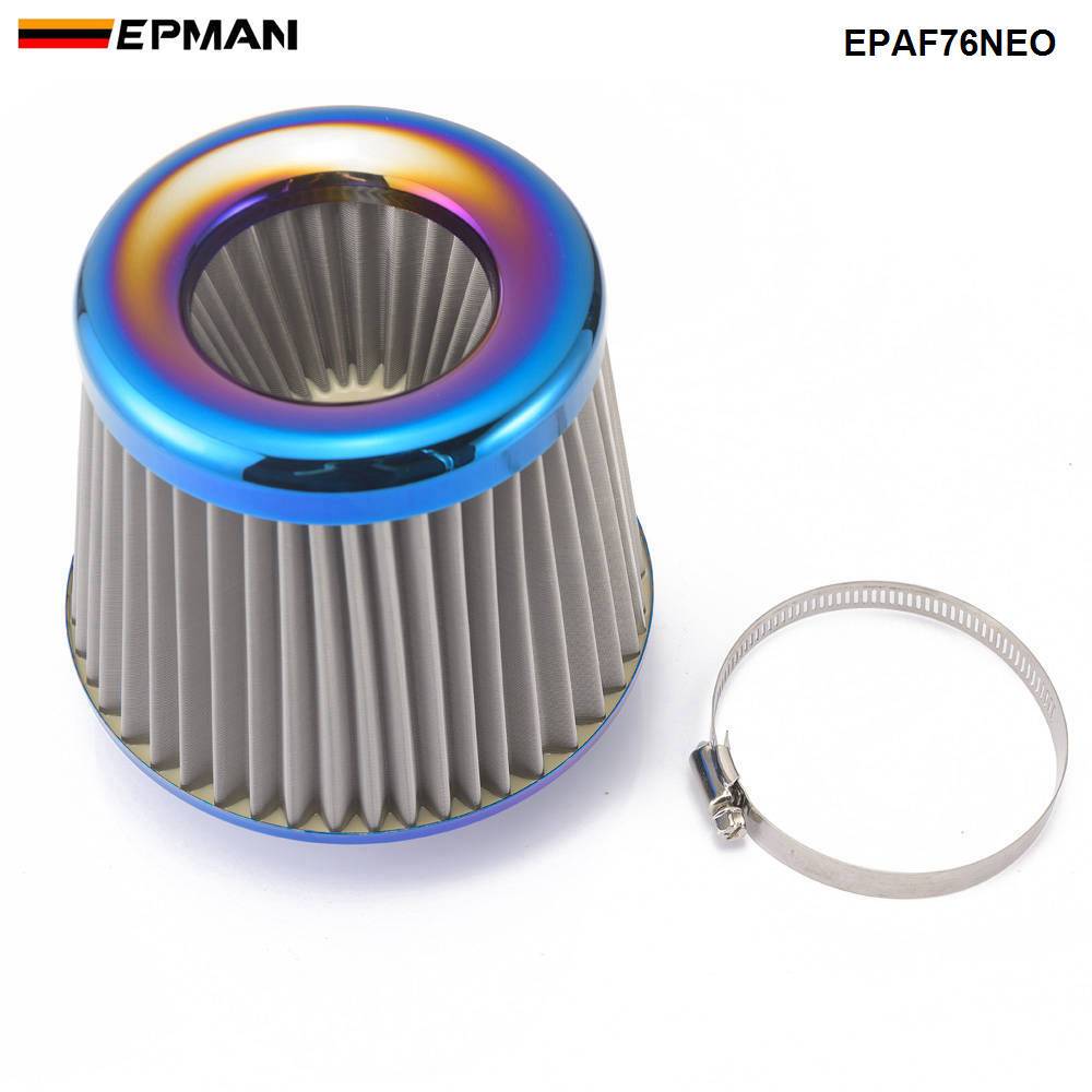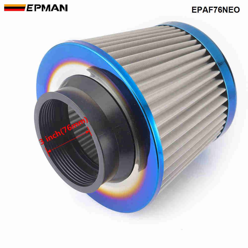 EPMAN Universal Air Filter Stainless Steel Burnt Blue 3'' / 76mm Power Intake High Flow Cold Air Intake Filter Cleaner EPAF76NEO