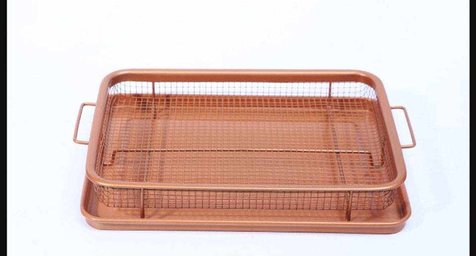 Готовьте с улыбкой, потому что готовка стала проще! Теперь вы можете печь, жарить и жарить любимые блюда с одним и тем же набором каждый день. Забудьте о повороте, листании и горении при готовке. Специальное Покрытие гарантирует отсутствие прилипания пищи к поверхности, а циркуляция воздуха уменьшает вероятность пригорания пищи, она дает идеально хрустящие, золотисто-коричневые результаты. Выкиньте фольгу и пергамент, они вам больше не нужны. Этот удивительный кухонный инструмент очень легкий и подходит для любого вентилятора или газовой печи или под грилем.