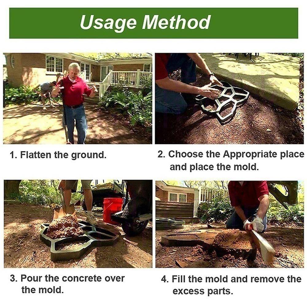Индивидуальная форма для кирпича, раскладывающая эффект, размещенный как блоки камней, для создания собственного патио или дорожки, а затем превращает его в реальность.