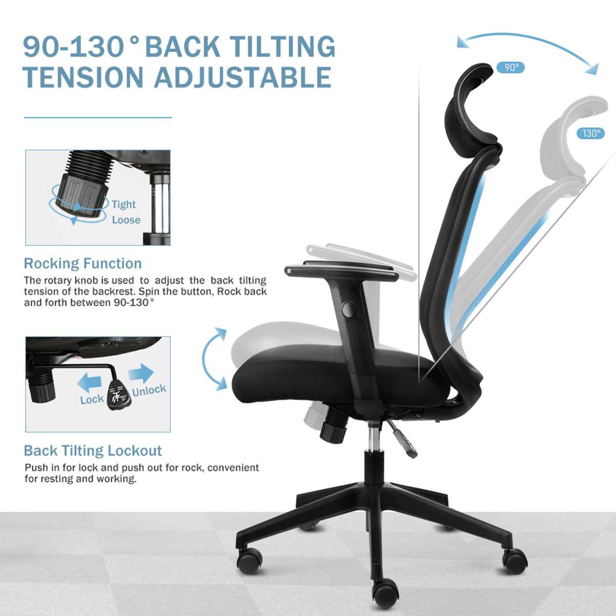 · 【Спинка наклоняющаяся и регулируемый подлокотник/высота сиденья 】-откидывается кресло с регулируемой регулировкой натяжения наклона и рычагом наклона под сиденьем, что обеспечивает настраиваемый наклон от 90 до 130 градусов, дает вам лучшее место для вашей осанки. Регулируемый подлокотник с полиуретановой крышкой, которая может регулироваться вверх и вниз. Пневматическое управление позволит вам поднимать или опускать сиденье (18,1-21,9 дюйма). Подходит для разной высоты.