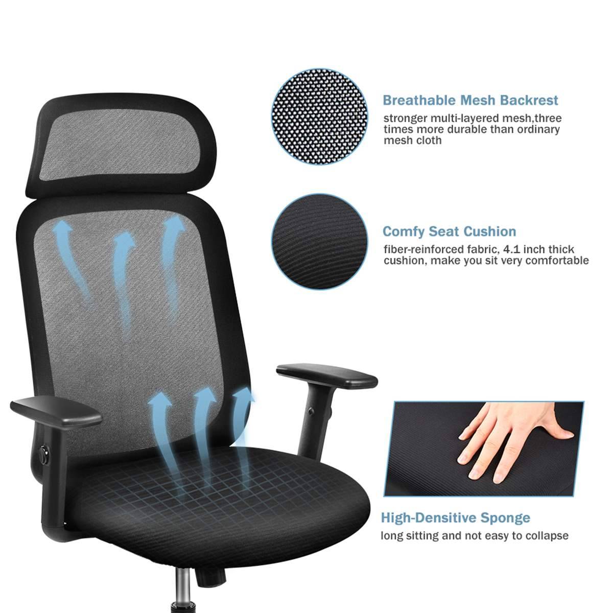 · 【Эргономичный и удобный-это Сетчатое с высокой спинкой офисное кресло было вдохновлено милой пандой. Эргономичный дизайн, который отлично удерживает позвоночник и облегчает давление и боль в спине и пояснице для повседневного использования. Полноразмерный подголовник плотно разработан для вашего отдыха, обеспечивает индивидуальный рельеф шеи и поддержку головы, особенно в положении лежа.