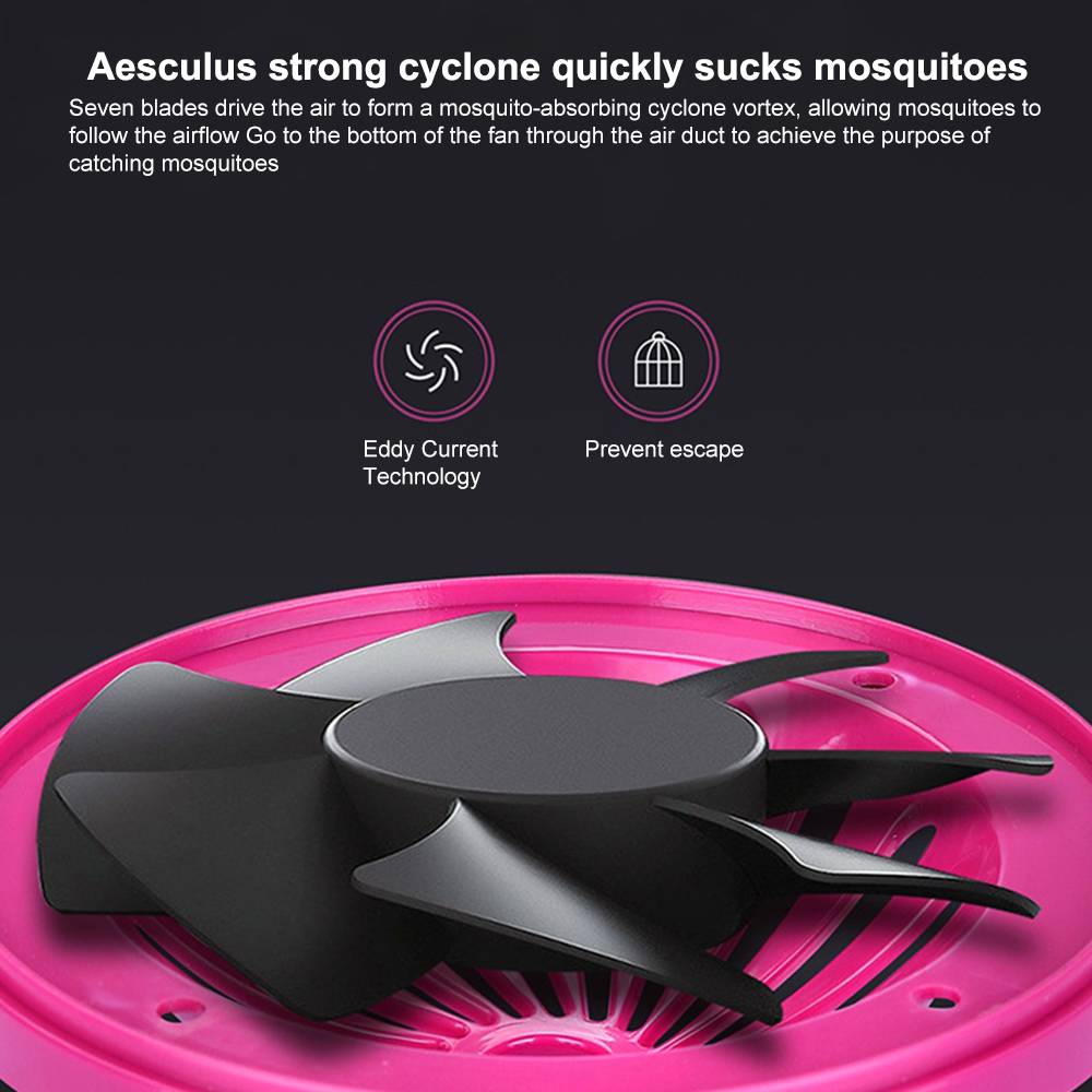 Эффективный антимоскитный контроль: работает с мощным вентилятором, циркуляцией воздуховода, конвекцией 7 спиральных ветровых лопастей, обеспечивает Мощное всасывание, формируя большой поток воздуха. Сделать комаров обезвоженными и умершими.