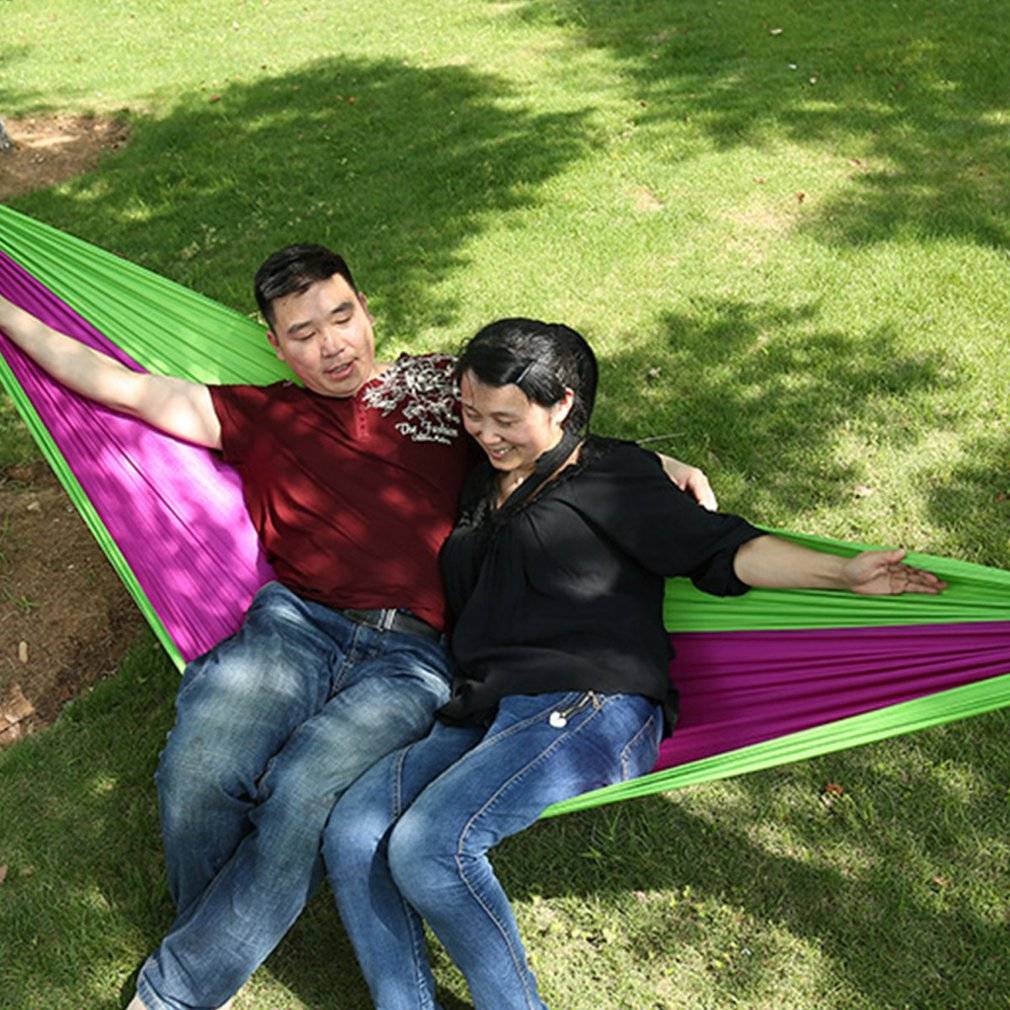 Enjoy the floating leisurely double widened parachute hammock, outdoor camping indoor leisure swing. It is easy to use and can bear up to 300kg. It can also be used as a picnic mat on the floor. You can enjoy the outdoor leisure at any time. You can fold it back and put it on your body or put it in your hand. It is convenient and fashionable, it will not give you Bring any burden.