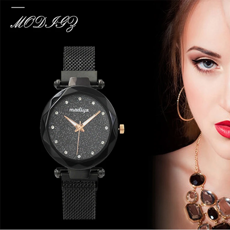 Модные женские часы, женские часы с бриллиантами, розовое золото, звездное небо, магнитные часы, повседневные женские часы с сетчатым кристаллом из нержавеющей стали