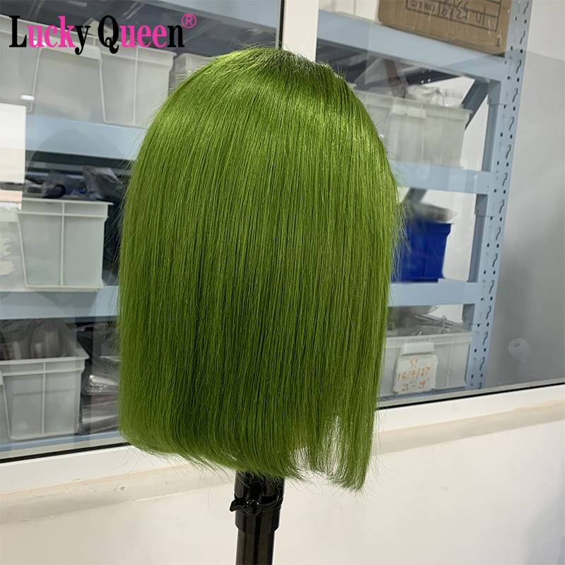 Парики из коротких кружевных фронтальных париков зеленого цвета 13х6, парики из кружевных фронтальных париков 150%, парики из человеческих волос Lucky Queen Remy
