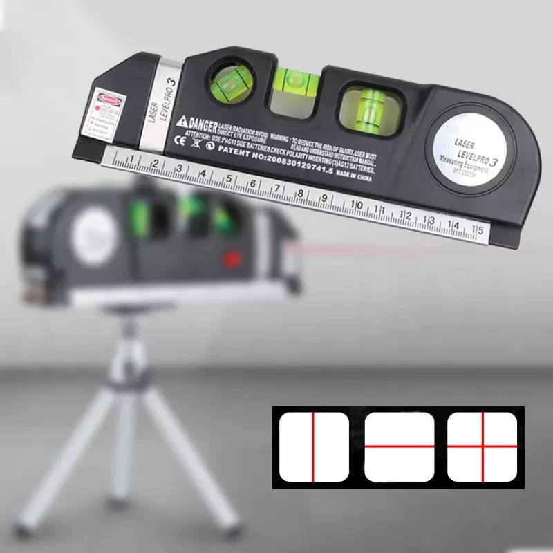 Третья функция: инструмент лазерного уровня с линейкой. (2,5 метров, с масштаба дюйма)