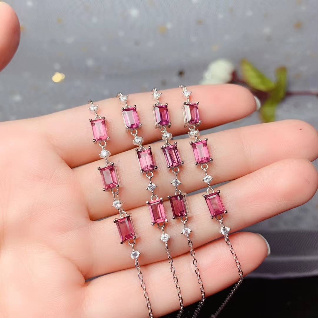 Новый стиль красный браслет гранат для женщин ювелирные изделия Настоящее серебро 925 натуральный драгоценный камень прямоугольник 4*6 мм размер девушка подарок на день рождения Большая распродажа