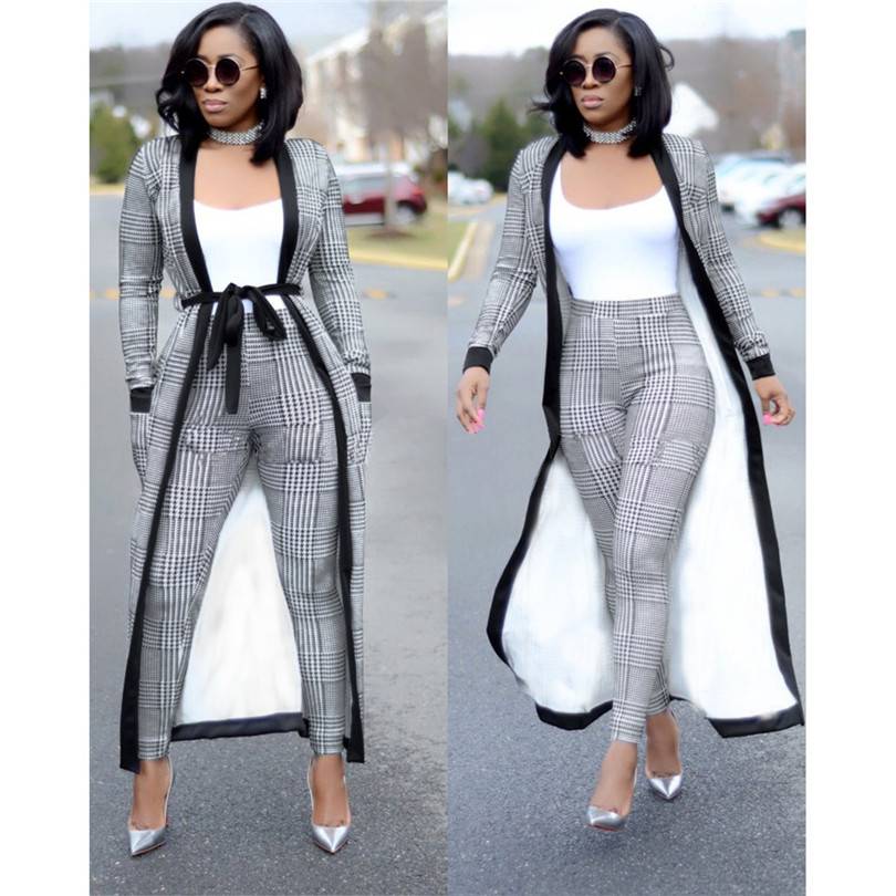 Костюмы со штанами из двух предметов, весна-лето 2018, повседневная сексуальная куртка с длинными рукавами + длинные брюки, комплект из 2 предметов, белый, синий, черный, элегантный нарядUS $15,66 /