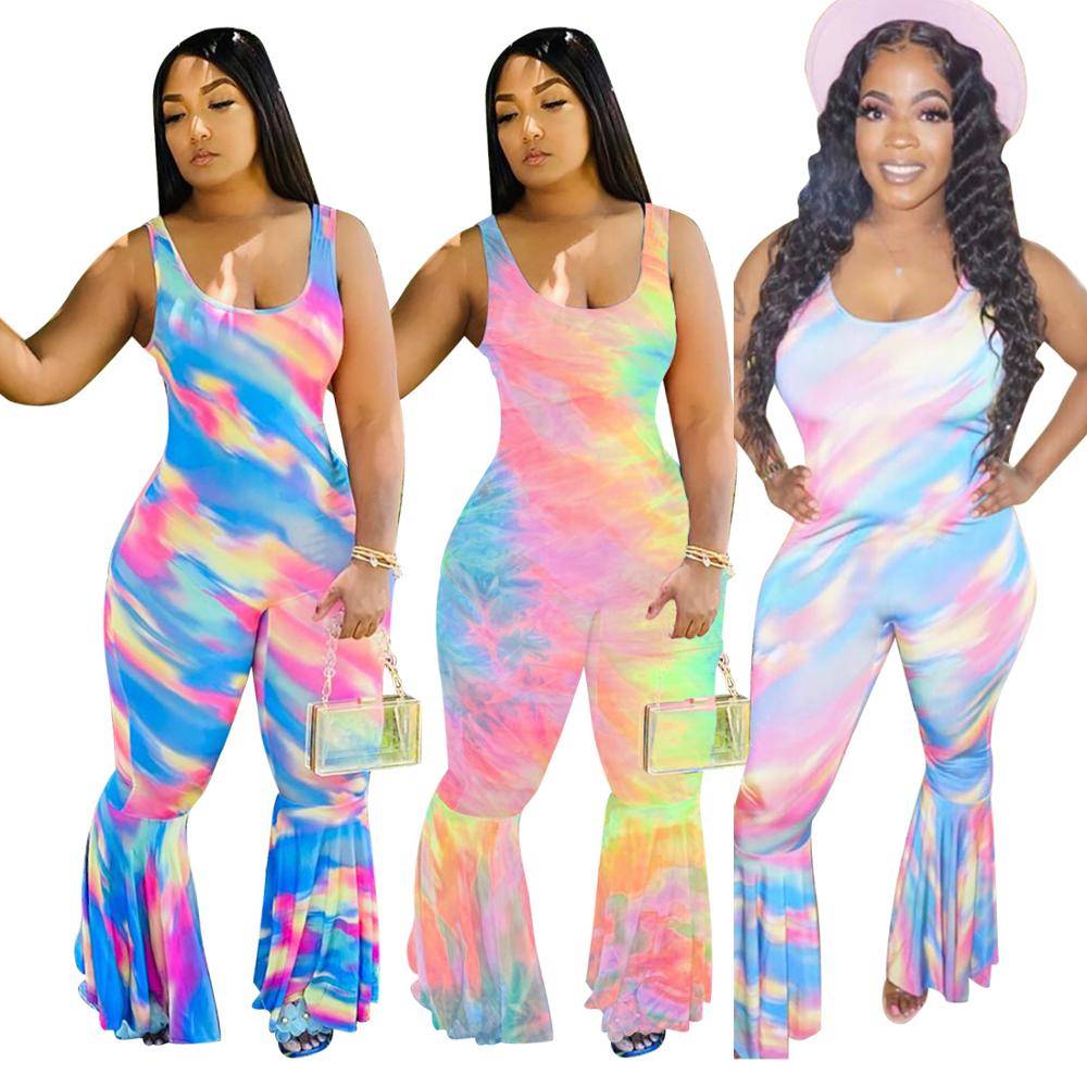 Женские комбинезоны без рукавов с принтом в виде галстука-красителя, Сексуальные вечерние комбинезоны с высокой талией для ночного клуба 2020US $14,95