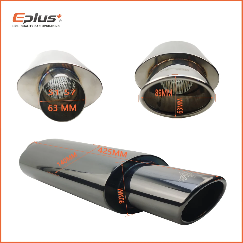 Название продукта: выхлопная труба Подходит для: универсального Материал: высококачественная нержавеющая сталь Размер интерфейса: 51 мм 57 мм 63 мм Размер экспорта: 63*89 (мм) Длина: 425 мм