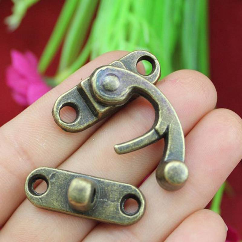 2Pcs 33mmx29mm Jewelry Box Hasp Hook Lock Latch Antique Brass Color & 5Pcs Antique Bronze Antique Cabinet Door Latch Hasps Decor