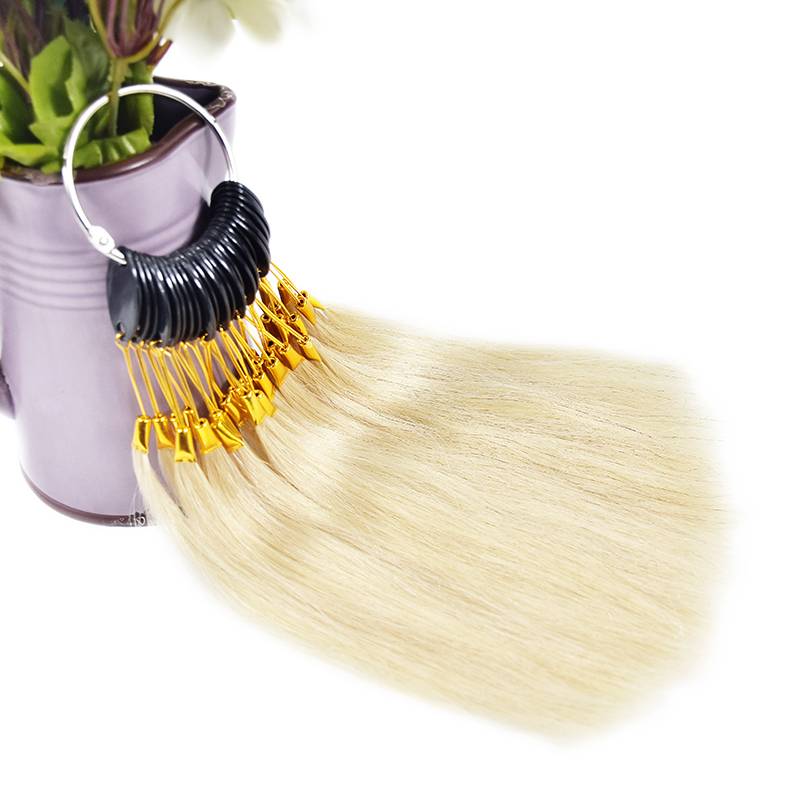 Тип изделия: цветные кольца Количество: 30 шт. Размеры: 7 см Материал: 100% натуральные человеческие волосы Цвет: блондинка Вес: 60 г Посылка: 30 шт цветные кольца для волос Функции: Парикмахерская практика Пермь, отбеливатель, краска, резка, удар