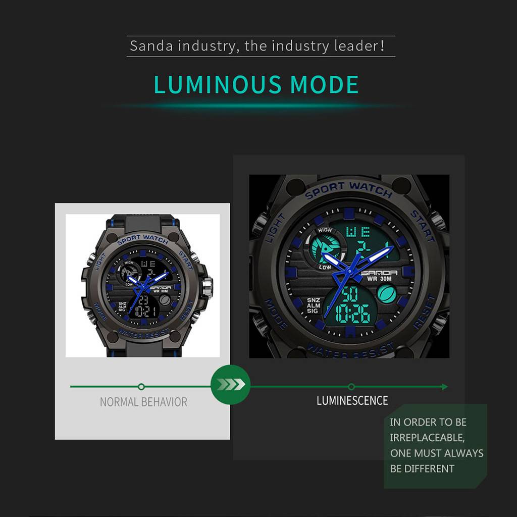 Высокое качество Мужские спортивные часы с двойным дисплеем аналоговые цифровые светодиодные электронные наручные часы 30 метров водонепроницаемые