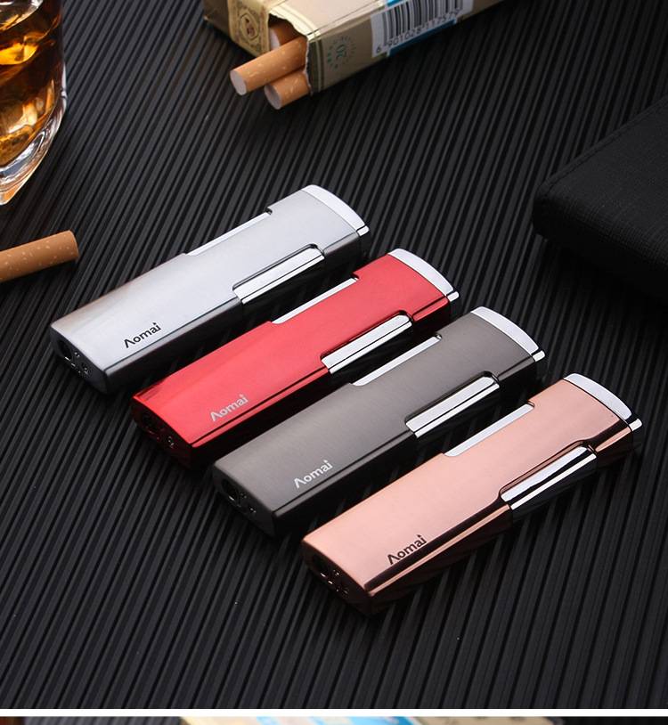 Металлический ультра тонкий фонарь турбо Зажигалка струя бутан газ сигара необычная Зажигалка Ветрозащитная длинная полоса прямая Зажигалка для сигарет