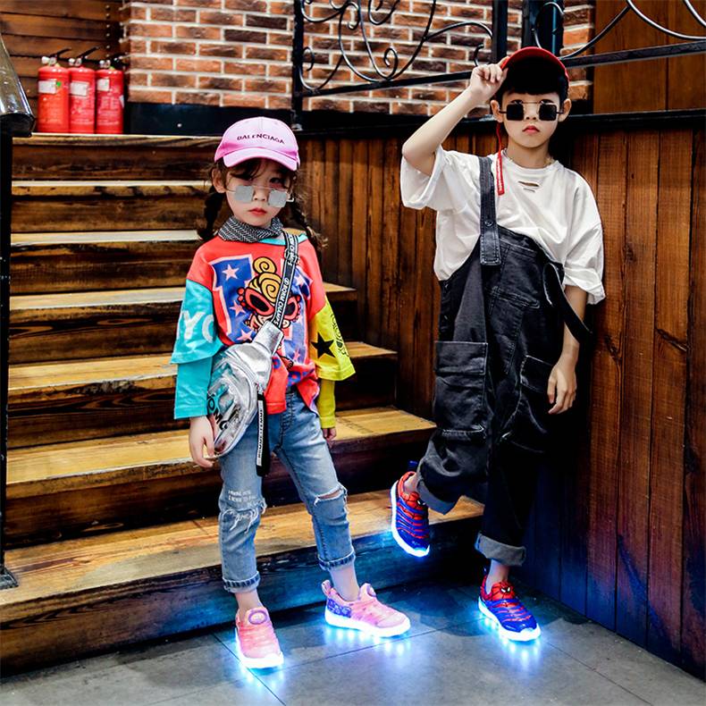 Size 25-37 Kids Led USB Recharge Glowing Shoes Children's Hook Loop Shoes Children's Glowing Sneakers Kids Led Iuminous Shoes