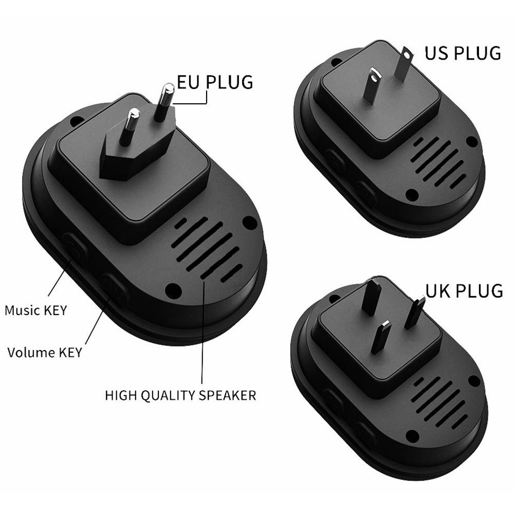 11. Просто подключите приемник к электрической розетке, кнопочный передатчик может быть приклеен к двери с помощью клейких лент.