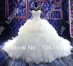 Бесплатная доставка 2016 собор Свадебные платья Роскошный Королевский Паффи Catherdarl Поезд бисером Свадебные платья из органзыUS $188,00