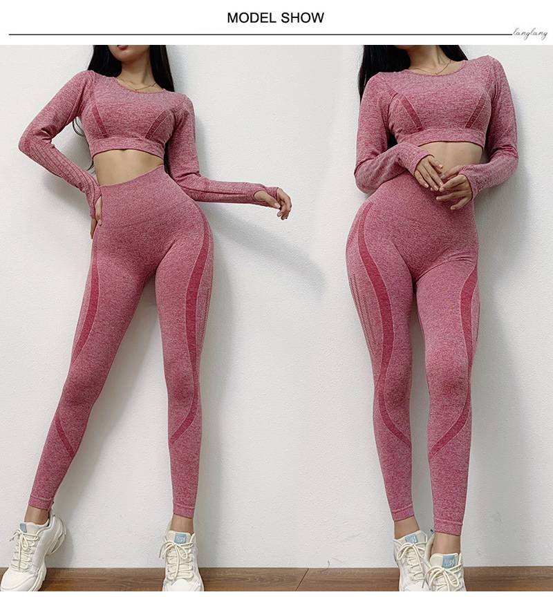 Комплект из 2 предметов, бесшовный комплект для йоги, для фитнеса, для женщин, для тренажерного зала, одежда для тренировок, женский спортивный костюм, топ для йоги с длинными рукавами, бесшовные леггинсы, комплект