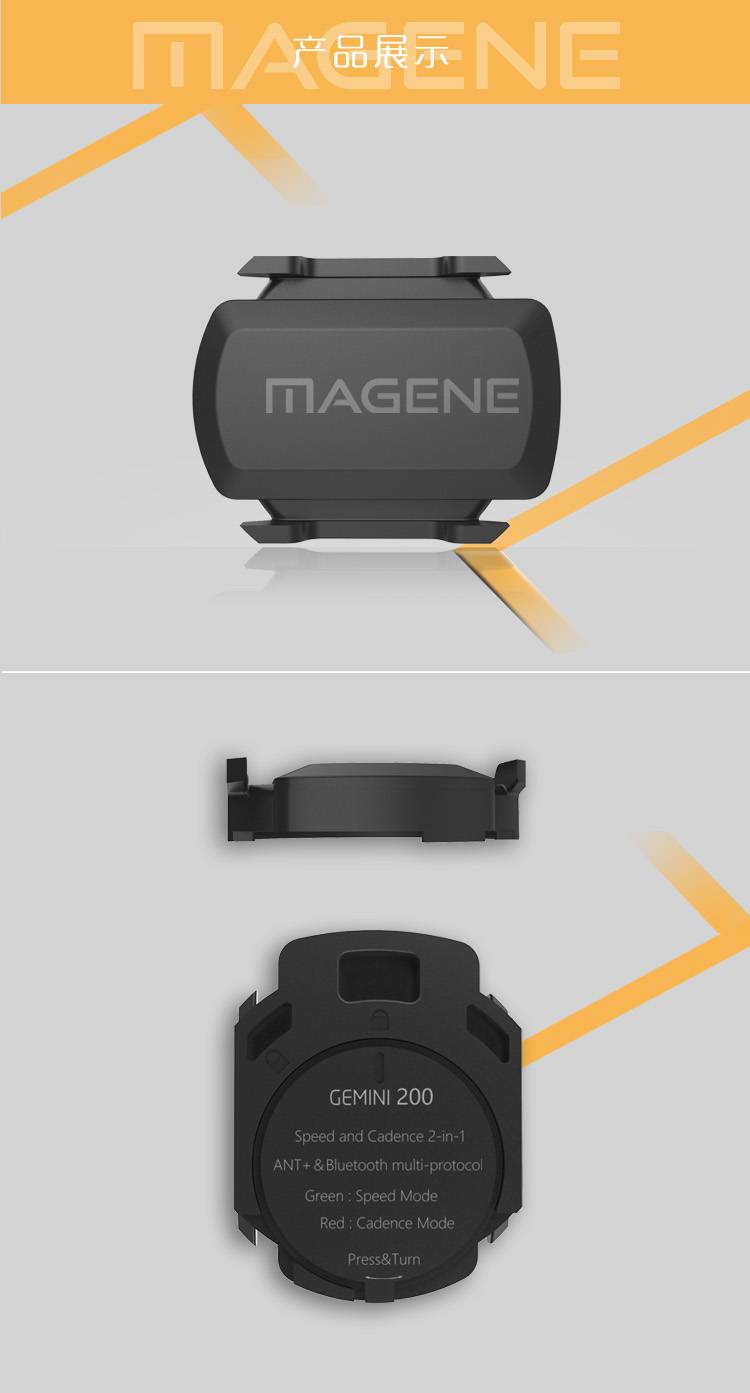 Connects wirelessly via Bluetooth 4.0 and ANT+ on your iPhone, Android, and/or bike computer. All-new dual-mode speed&cadence sensor, by removing and replacing the battery you can switch between cadence and speed sensor modes. Works with Strava, ZWIFT, Wahoo, mapmyride, RideWithGPS APPS. Supports Garmin, polar, Suunto sport watch and bicycle computer and more. Easy to install and remove. Simply attach the sensors and ride. No magnets. Mounts to any bike's wheel hub, these sensors are easy to install, maintain and move between bikes. Designed to work with all bike, riding types and terrains. It works with spin bikes and recumbent pretty easily too. IP66 splash-proof. Ultra-long battery life 500 hours using time and replace. product description product:Speed Sensor cadance 2 in 1 model :gemini200 size:8.85x29.8x38.3mm waterproof:ip54 sensor:Geomagnetic Sensor battery:2032 Button Battery Wireless Interface:Bluetooth / ant+ weight:9g battery lift:400 hour how to use 1.if the speed and Cadence use together,need buy two pcs 2.in speed model,use the app need set the wheelset size then can Exact display speed 3.first use the equipment,need remove the Insulating paper make sure the battery + up 4.reinstall battery can Switching Mode speed model to cadence model or cadence model to speed model