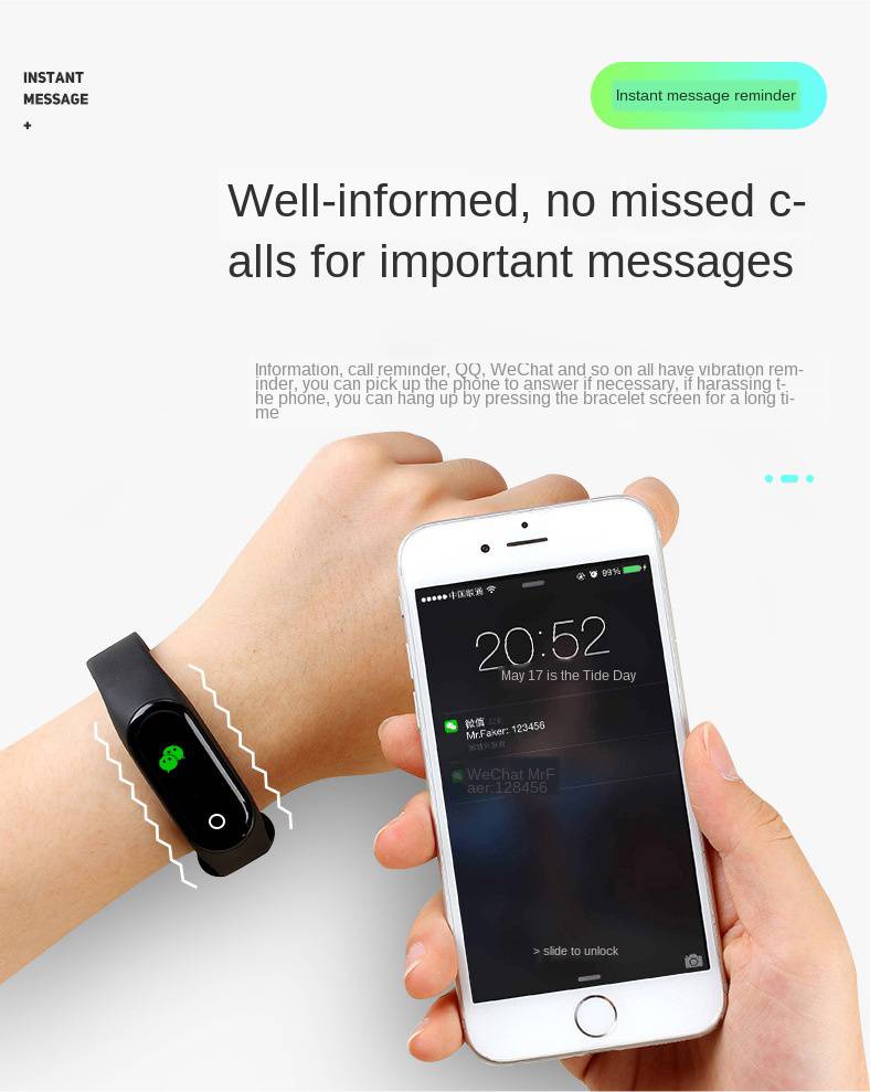 Основные характеристики продукта: 1. Мониторинг Артериального давления (данные о кровяном давлении могут быть непосредственно видны на браслете) 2. Мониторинг сердечного ритма (можно выбирать пульс в течение всего дня, артериальное давление и пульс можно измерять каждые 10 минут) 3. С книгой (он может отображать 4 страницы содержимого, 2 линии на странице, 8 слов на линию) 4.qq, WeChat вибрационное напоминание + имя дисплея + содержимое, другое программное обеспечение Push Message Display; 5. Facebook, WhatsApp, Twitter дисплей сообщения + вибрация, мобильное приложение сообщение Push опционально 6. Вы можете выбрать из флип-экрана 7. Вибрация вызова 5 раз напоминание + имя дисплея, SMS дисплей 8. Будильник вибрационное напоминание + дисплей 9. Измерение частоты сердечных сокращений 10. Шаг упражнений 11. Расстояние Дисплей 12. Калорий Дисплей 13. Время Дисплей 14. Дата Дисплей 15. Еженедельные Дисплей 16. В IPX67 Водонепроницаемый 17. Защита от перезарядки 18. Мощность Дисплей 19. Монитор наблюдения за сном 20. Поддержка 12 языков (русский, немецкий, итальянский, чешский, японский, французский, польский, упрощенный китайский, традиционный китайский, английский, португальский, испанский) 21. Напоминание о задаче (Android) 22. Обмен Функция 23. Функция напоминания о необходимости двигательной активности 24. Bluetooth ID Дисплей 25 лет. Время заставки можно установить 26. Запрос диаграммы истории данных 27. Отключения Рабочий ток: 500ma-1000ma Рабочее напряжение: 5 В Рабочая температура:-20 ℃ ~ 70 ℃ Режим зарядки: контактная зарядка (зарядный зажим) Перед отправкой товар также проходит тщательную проверку перед отправкой, поэтому родители могут быть уверены в покупке, удобнее в использовании