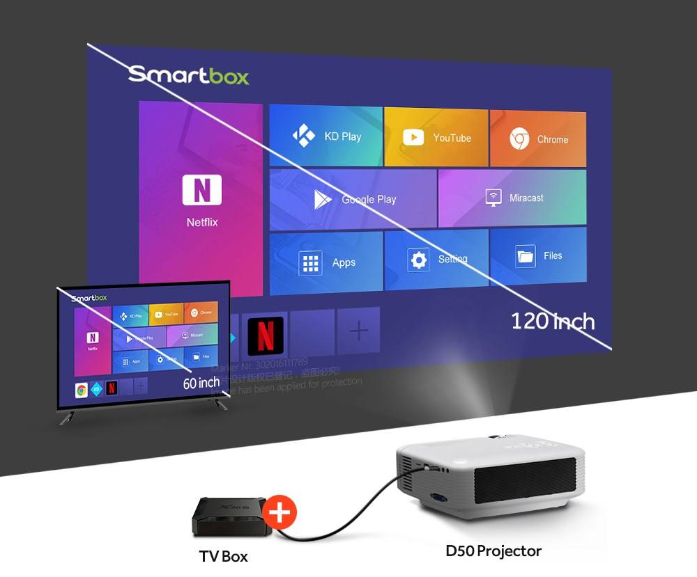 Большой опыт работы с экраномБольше, но дешевле, чем телевизор по той же цене, вы получаете много удовольствия, Наслаждайтесь своим домашним кинотеатром счастливо. | Купите 1 получите 3 бесплатноВы получите кабель HDMI,2 шт бесплатных 3D очков и липучки (они будут отправлены, если вы заказываете ТВ-бокс со склада Китая, вы можете зафиксировать ТВ-бокс на проекторе) | Местный складБыстрая доставка 2-15 дней, беспошлинная доставка! У нас есть запас в Испании, Германии, Франции, Италии и Корее сейчас, 2-15 дней быстрая доставка! Беспошлинный |
