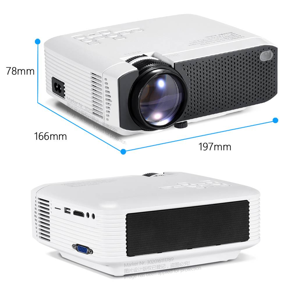 Хорошо шлифованный ЖК-объективАун проектор выбрал пять слоев хорошо шлифованных ЖК-линз, чтобы предложить нашим клиентам четкое разрешение. И усовершенствованные светодиодный лампы длятся до 30 000 часов. | HiFi уровень производительности динамикаВстроенные стереодинамики со стереозвуком обеспечивают более мощное визуальное наслаждение от большого экрана. | Plug & PlayПроектор позволяет подключать ТВ-приставка/ноутбук/DVD / PS3 / Xbox/ТВ-приставка через HD-IN; Подключение к ПК через разъем VGA; Подключение ТВ-видео устройств через AV вход; |
