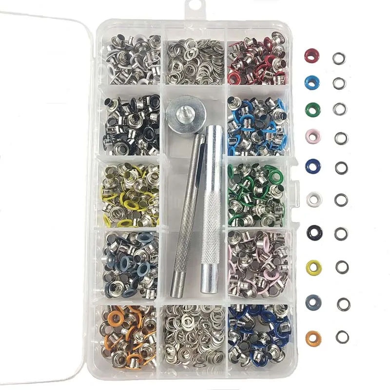 Металлические люверсы для кожевенного ремесла, скрапбукинга, обуви, ремня, кепки, сумки, бирки, люверсы с монтажными инструментами, 10 цветов, 4 мм, 300/400 шт.