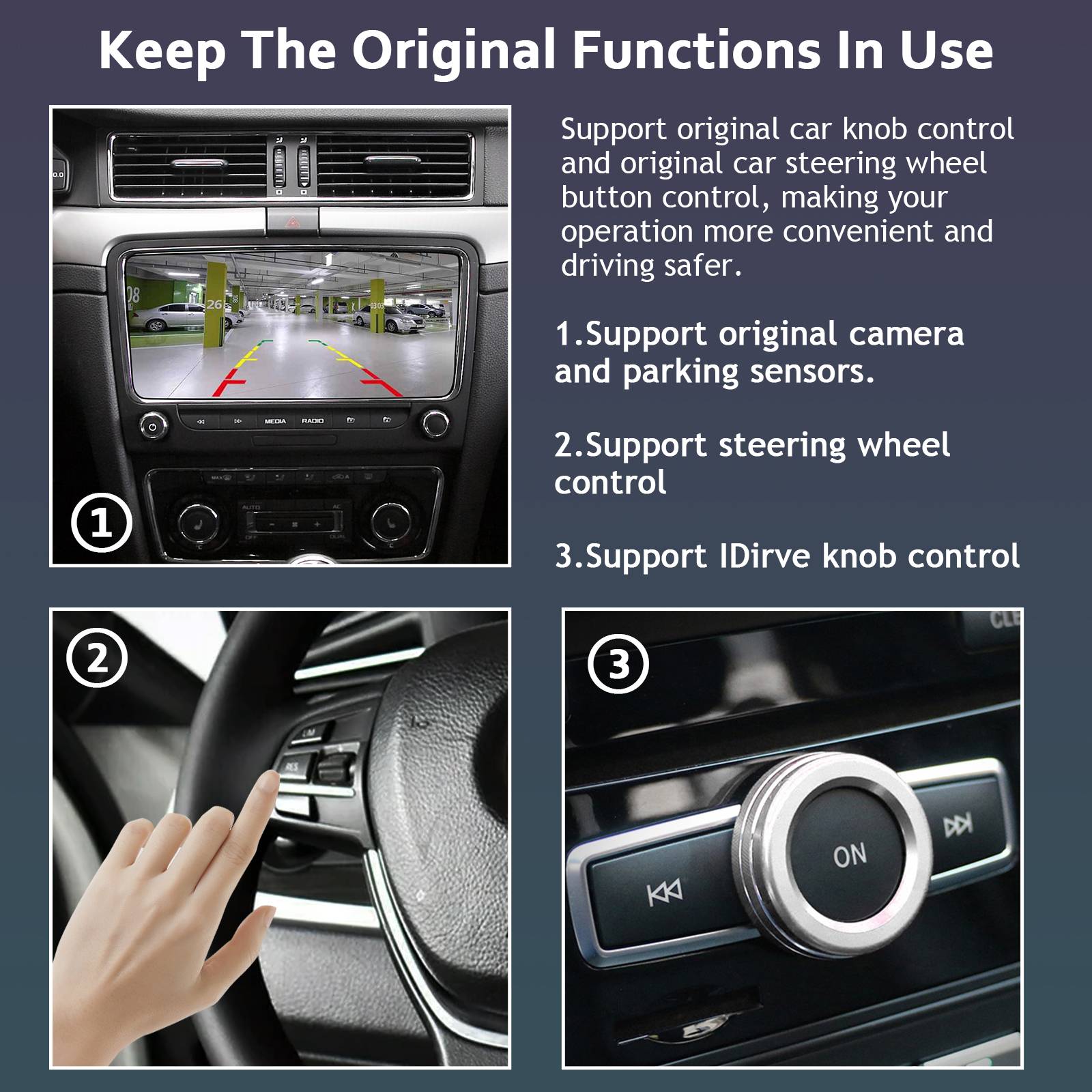 ✅Поддержка оригинальной камеры заднего вида автомобиля, послепродажной камеры заднего вида (CVBS/AHD), фронтальной камеры (можно настроить) или DVR