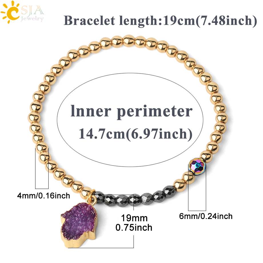 CSJA, женский браслет, золотой цвет, 4 мм, бусины, медная цепочка, энергетический, магнитный, гематит, браслеты для мужчин, друза, Хамса, рука, шарм, браслеты F621 | |