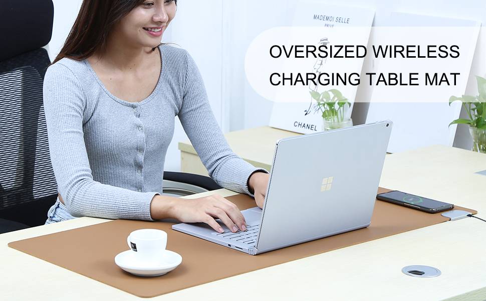 Беспроводной зарядки по стандарту QI поверхность письменного стола: отличный 2-в-1 комбинированный дизайн сочетает в себе удобство беспроводную зарядку и мощный микро-структурированных поверхность письменного стола. У вас больше нет запутанных кабелей в рабочей зоне и вы можете заряжать телефон в любое время.