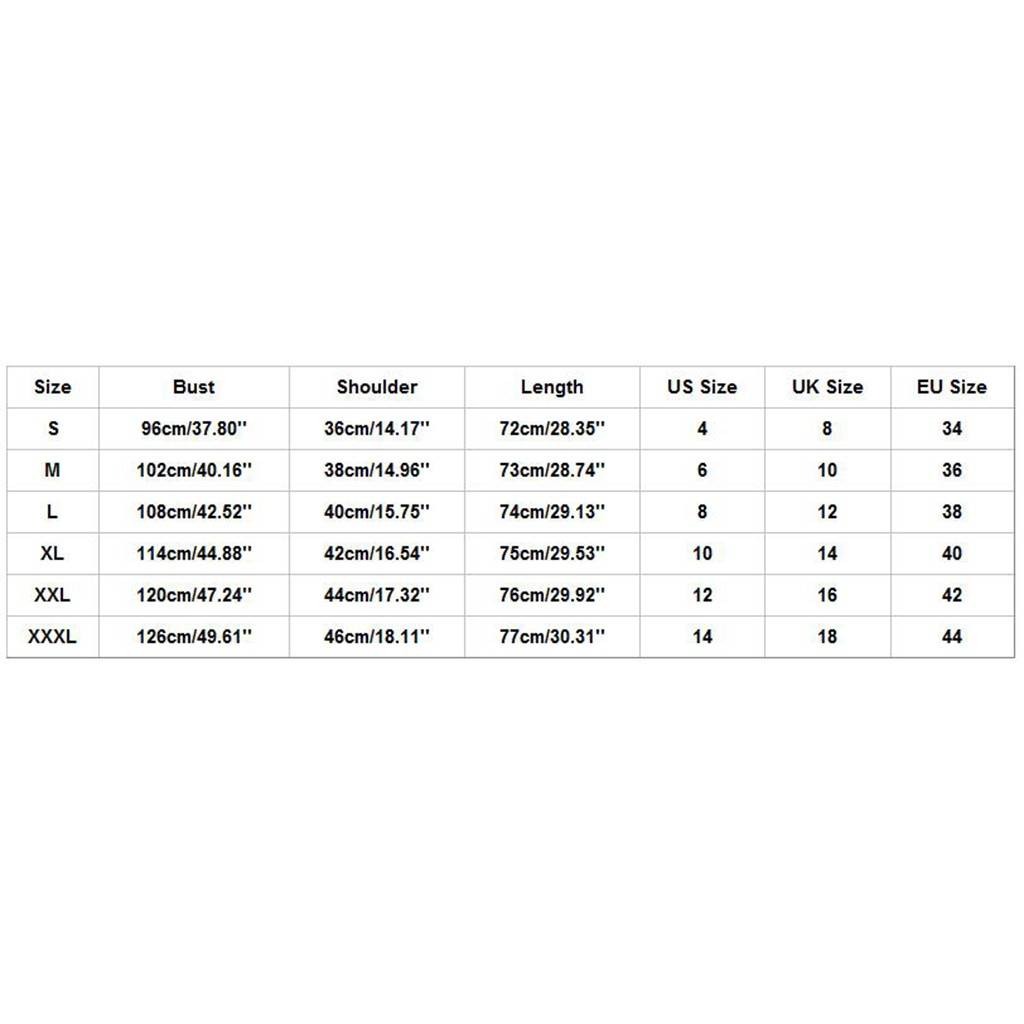 | Size | Bust | Shoulder | Length | US Size | UK Size | EU Size |