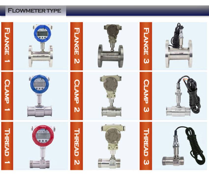 Вышеуказанные варианты-турбинные расходомеры разных диаметров. Расходомеры имеют следующие характеристики 1. 【 24VDC 】 источник питания 2. 【Резьбовое соединение 3. 【 4-20mA 】 выход сигнала.