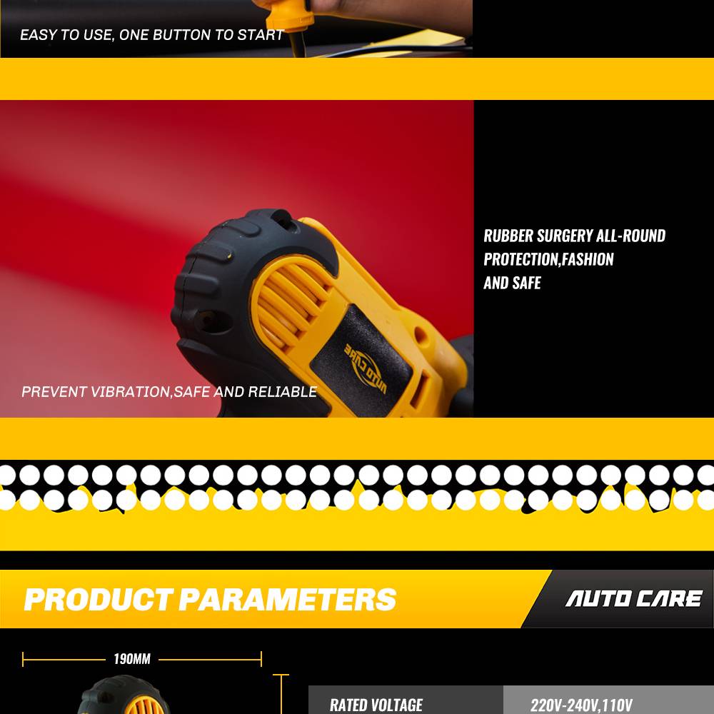 · Low noise,quiet grinding. · Long cable, can deal with most situation. · The design of M-14 thread is convenient to install the self adhesive disk. · Portable and non- slip handle,make all the progress no blind angle. · Adjustable Speed, can be adjusted to meet different needs. · The handle can be installed both on the left and right sides for easy left and right hand use · This polishing machine is not only suitable for cars, but also great for household use,such as floor waxing, metal descaling, furniture waxing, jade polishing, etc.