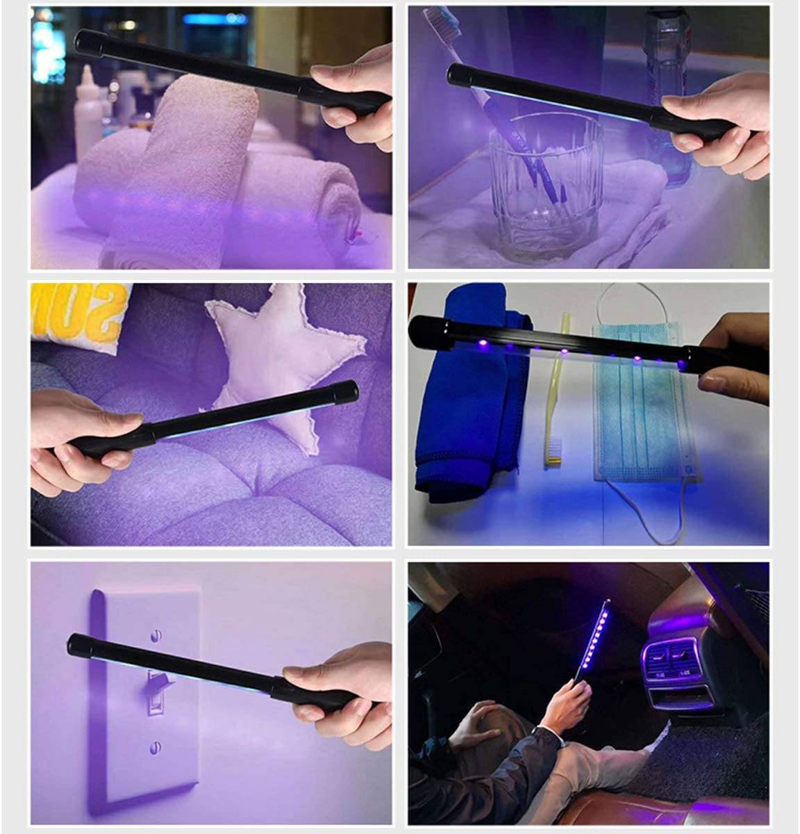 Портативный светодиодный светильник для дезинфекции, переносная дезинфекционная палочка с USB зарядкой, ультрафиолетовый светильник, стерилизующая палочка для гостиничного дома, гардероба, туалета, автомобиля, питомца (черный)