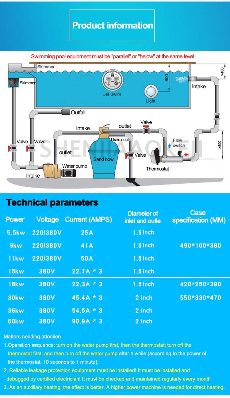 1. Модель: 15 кВт 2. Пудра: 15 кВт 3. Напряжение: 380 В 4. Ток (Ампер): 22,7A * 3 5. Диаметр входа и выхода: 1,5 дюйма Изображение: