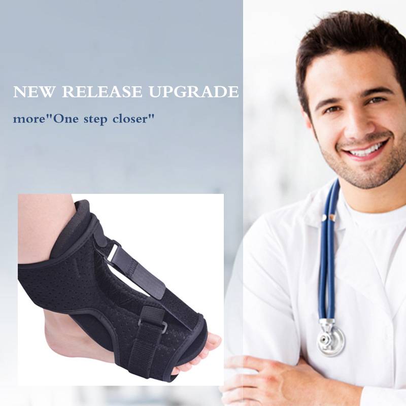 Ночная шина подошвенного фасциита предназначена для поддержания растягивания стопы и обеспечения ортопедической поддержки для падения стопы, чтобы уменьшить воздействие утренней боли в пятке, связанной с подошвенным фасциитом и ахилловым тендонитом.