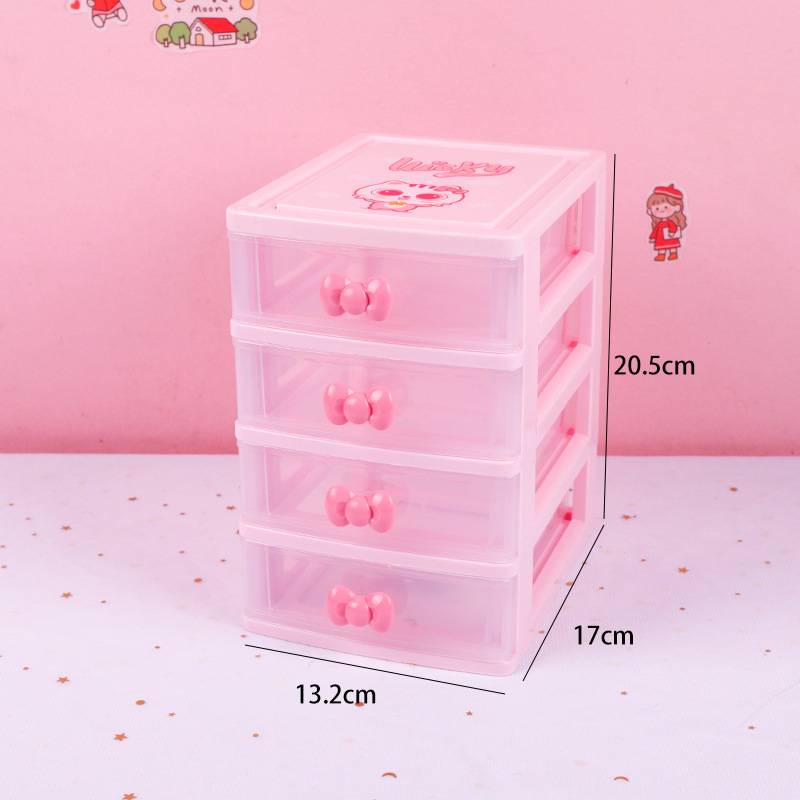 Многофункциональный настольный пластиковый ящик, контейнер, мультяшный милый кот, розовый прозрачный ящик для хранения мелочей, Домашний Органайзер