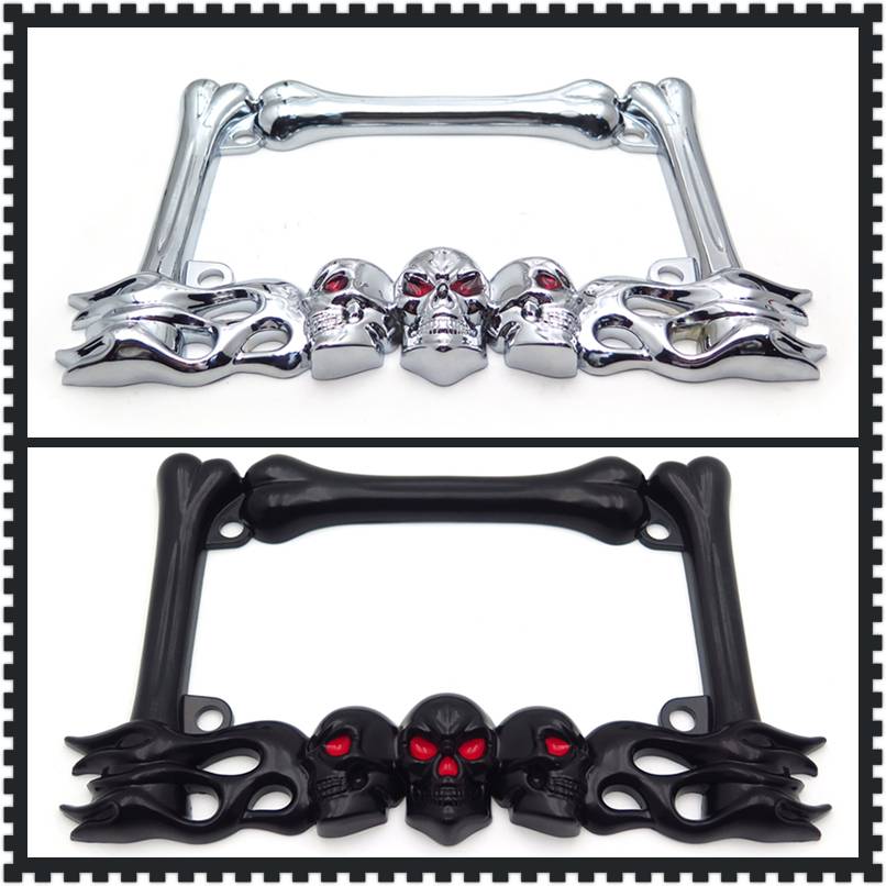 Aftermarket Запчасти для мотоциклов крейсер аксессуары череп и пламя мотоцикл номерной знак рамка (хром) черный для harley davidson