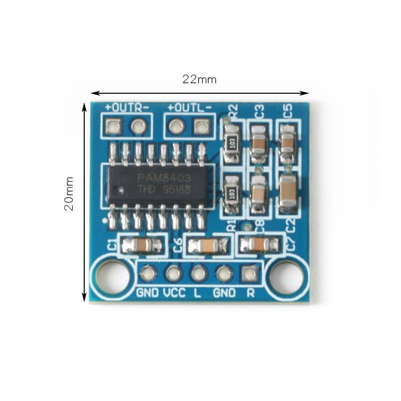 1. Встроенный чип усилителя звука PAM8403, 3 Вт * 2 безфильтровальный стерео аудиоусилитель класса D