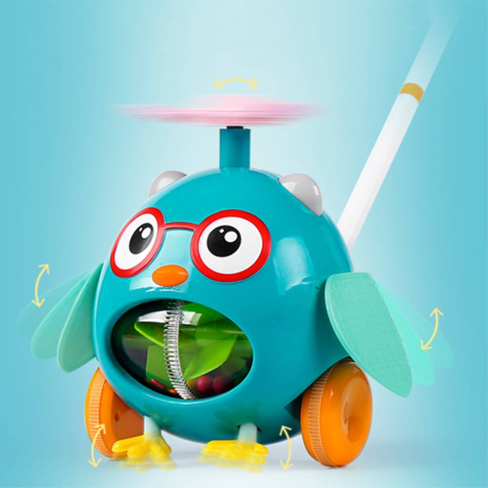 -Когда ребенок нажимает, красочные бусины в сове закатываются, чтобы сделать звук «шуршания»
