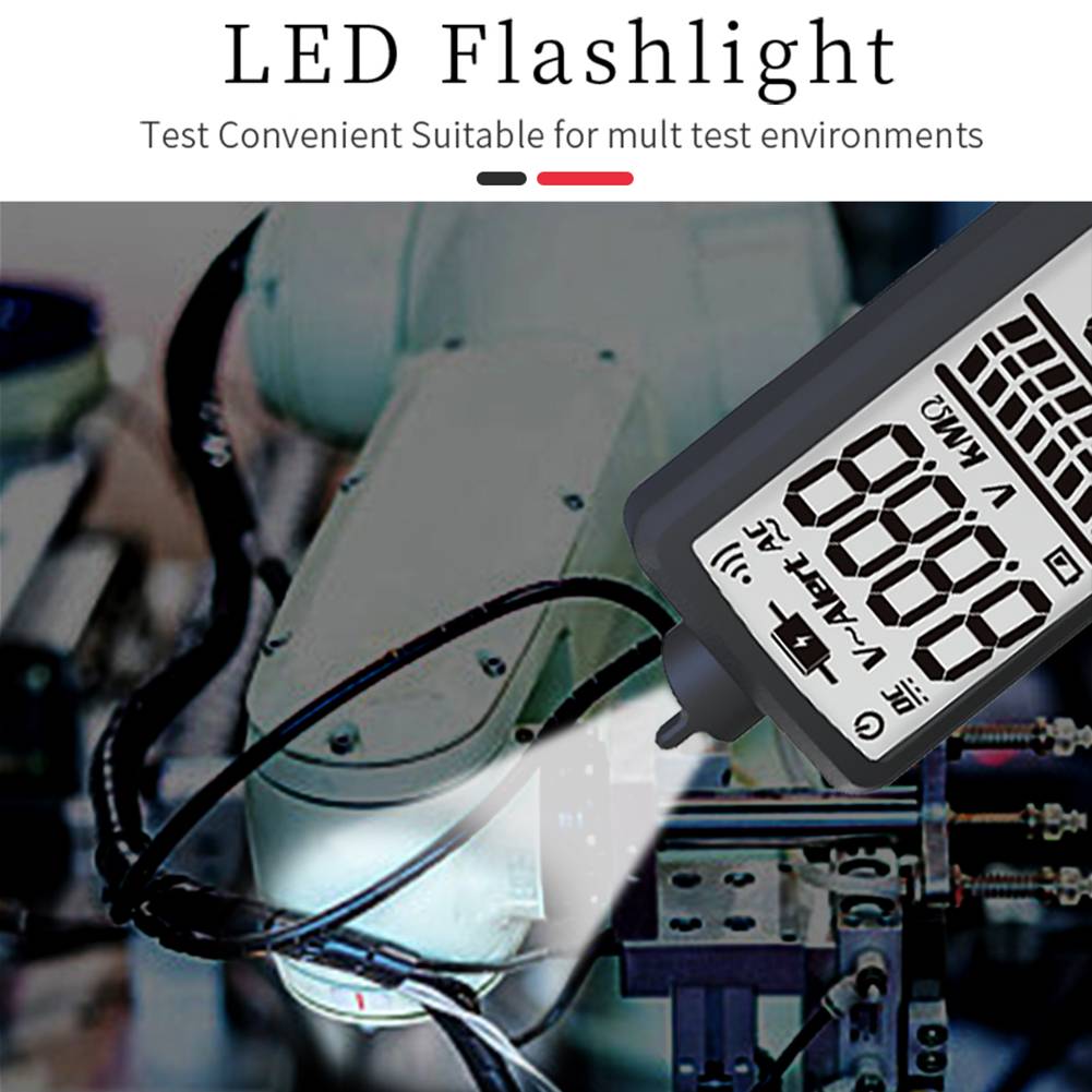 -Одновременно имеет как тест функции мультиметра и детектора напряжения. В одно и то же время оптимального использования функций и проверять опытом. И добавлен новейший дизайн функции тестирования скрытых проводов.