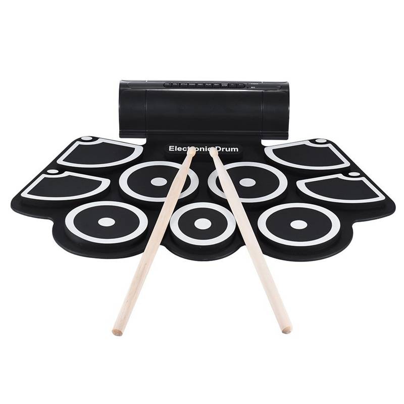 9 drums pads: Crash cymbal, High tom, Snare, Open/close Hi-hat, Low floor tom, Low-mid to, Ride cymbal