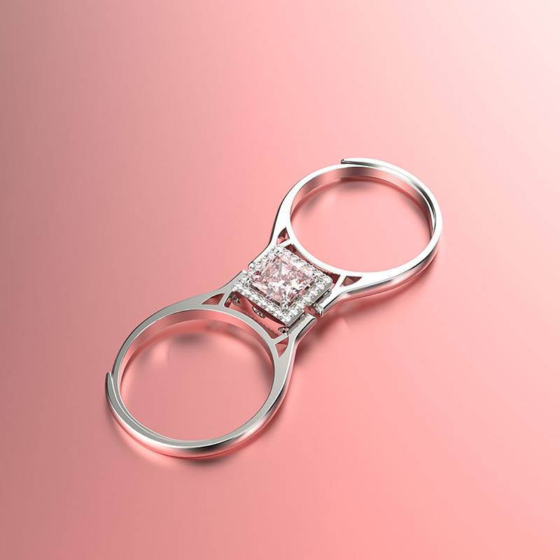 Специальный дизайн, кольцо может поворачиваться на другой размер, есть два основных камня, один белый цвет, один розовый цвет.