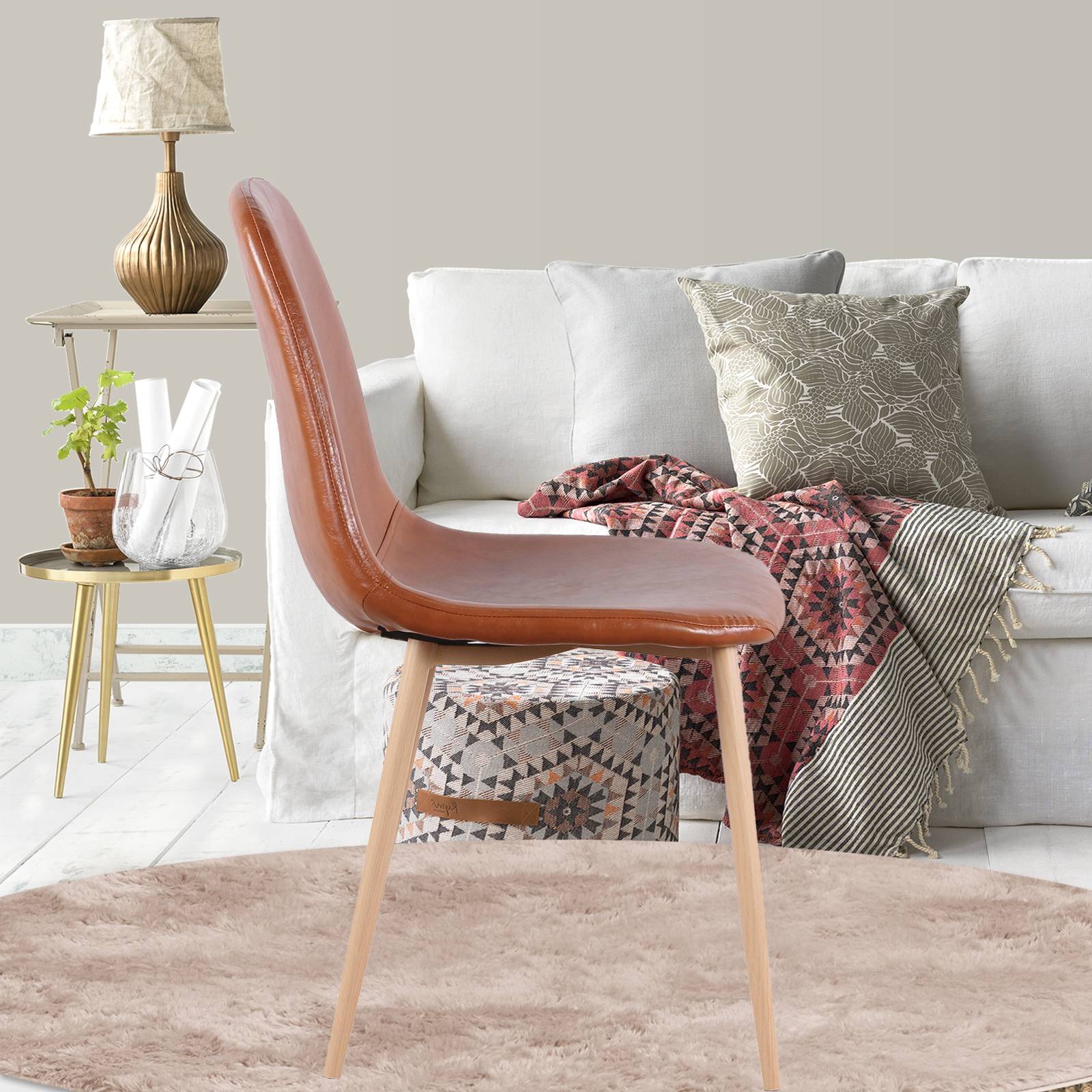 Набор из 4 кухонных обеденных стульев, мягкие металлические ножки из искусственной кожи в стиле ретро, кухонная гостиная столовая офисная (коричневая)